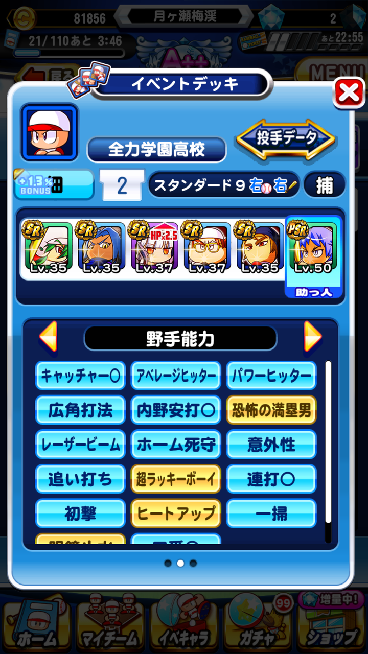【パワプロアプリ】フレをエプシドから冴木に変えたらあっさりS7作れましたわ!ミートと守備101で止めたほうがよくない?