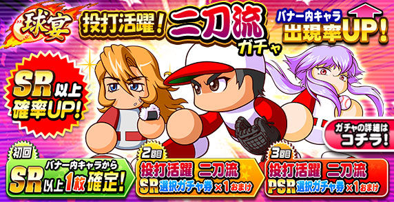 続きを読む:【パワプロアプリ】球宴 投打活躍!二刀流ガチャ!初回10連バナー内SR確定!【みんなの反応まとめ】