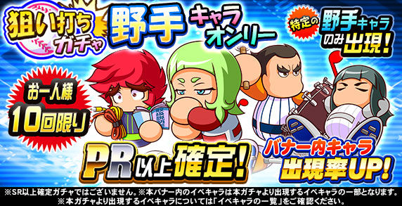 ※都合によりキャンペーン期間を変更する場合がございます。注目ポイント ① 特定の「野手キャラ」のみが必ず「PR」以上で出現!