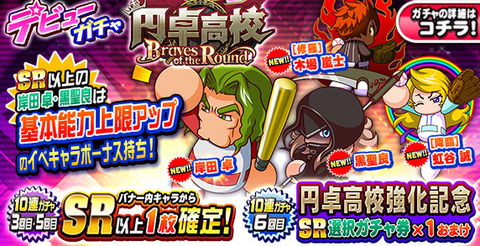 - 【パワプロアプリ】デビューガチャ 円卓高校~Braves of the Round~!30・50連でバナー内SR確定!60連...
