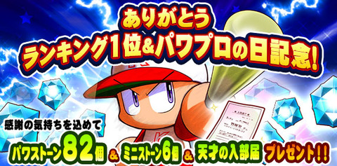 - 【パワプロアプリ】ありがとう!ランキング1位&パワプロの日記念プレゼント!【公式】