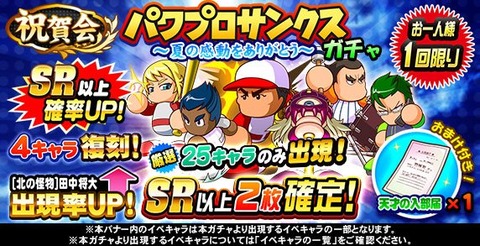 - 【パワプロアプリ】祝賀会 パワプロサンクスガチャ ~夏の感動をありがとう~【公式】