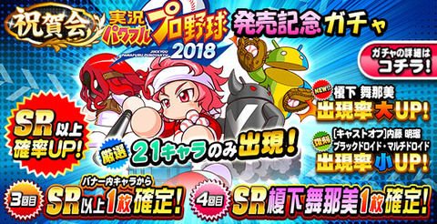 - 【パワプロアプリ】祝賀会 実況パワフルプロ野球2018発売記念ガチャ【公式】