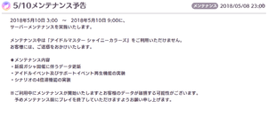 - 【お知らせ】5月10日3:00~9:00にメンテを予定 アイドルイベント及びサポートイ...
