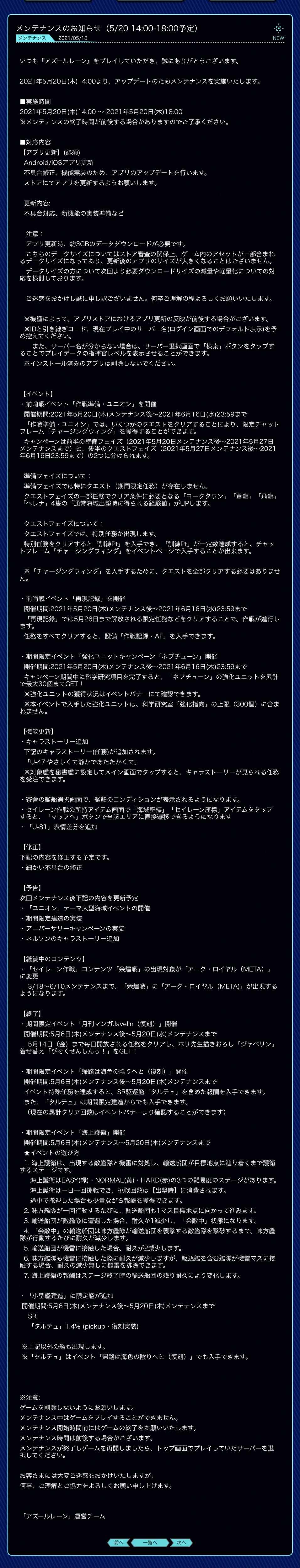 【アズールレーン】ユニオンイベ前哨戦など 5/20(木)14:00~18:00メンテナンス