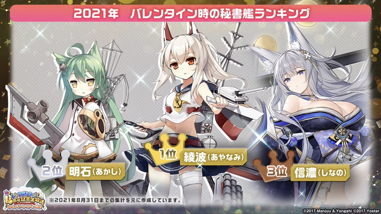 【アズールレーン】そうえば去年のバレンタイン1位は綾波だったんだな